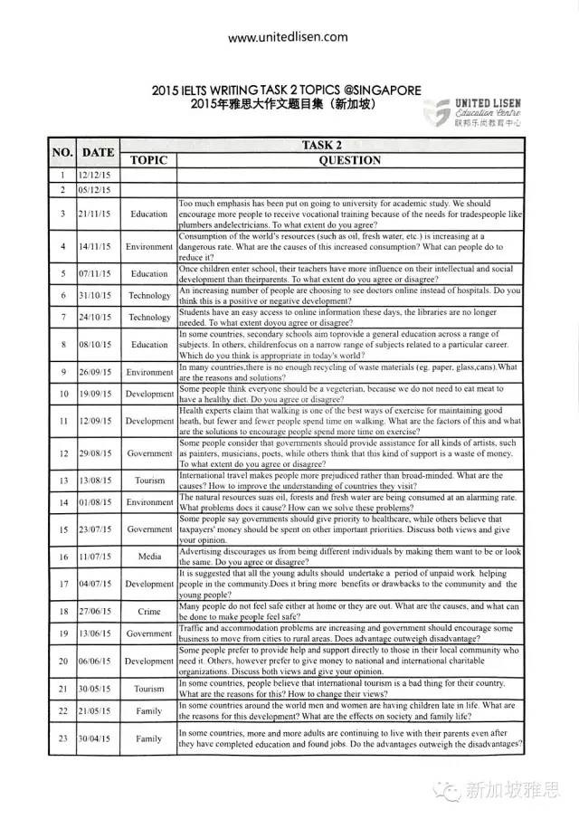 【獨家】2015年新加坡考區雅思大作文彙總