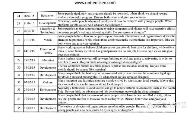 獨家傾情最全整理2015年新加坡考區雅思大作文題目,共35個(截至11月底),發展類題目占比26%,教育類題目占20%,環境類和科技類共占20%,呈現較爲均衡的分布。備戰明年考試的同學請重點關注這些真題並練習,做到有效&高效的學習!