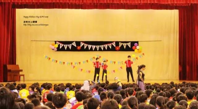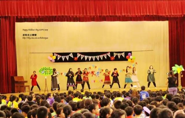 除了孩子們的表演,老師們的表演是本次慶祝活動的重頭戲,因爲是兒童節,所以老師們使勁了渾身解數來讓孩子們開心,每個年級的老師都表演了一個節目,有話劇,有歌舞,有魔術,孩子們看到了和平時完全不一樣的老師,都相當的興奮。