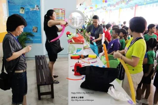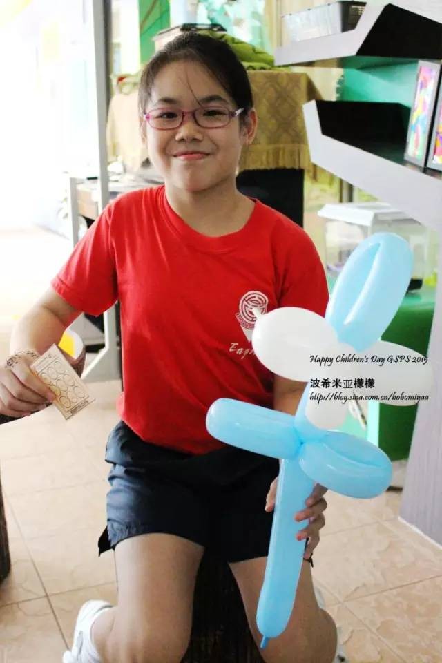 本次我非常出乎意料的被分配在了balloon sculpting,氣球造型玩具組,對于這個東西,我是一竅不通,並且,我是多麽的怕氣球啊,怕爆炸的一聲巨響!但是,今天已經被推到前台,不得不硬著頭皮開始操作,小組內有一位媽媽是氣球造型達人,而其他幾位媽媽也是氣球造型愛好者,只有我一個是菜鳥,關鍵是我不僅菜,還膽小如鼠,開始只是幫她們給氣球充氣,充的也是心驚膽戰,後來發現這個氣球造型攤位是最最最熱門的,大排長龍,只靠她們有點無法應付。那位達人媽媽是以前就認識的,于是她很耐心的開始教我怎麽做一些簡單的造型,讓我不要怕,說沒有那麽容易爆炸,于是我強忍著肝兒顫學會了做劍、小狗、機關槍,和一些自己發揮的小花。學校裏有不少我在補習班的學生,他們很興奮的拿著我做的氣球,歡天喜地的和別的同學說著,這是我的補習老師做的!我聽了也很開心,雖然手指都擰破了皮,身上也被汗水浸濕了幾次。