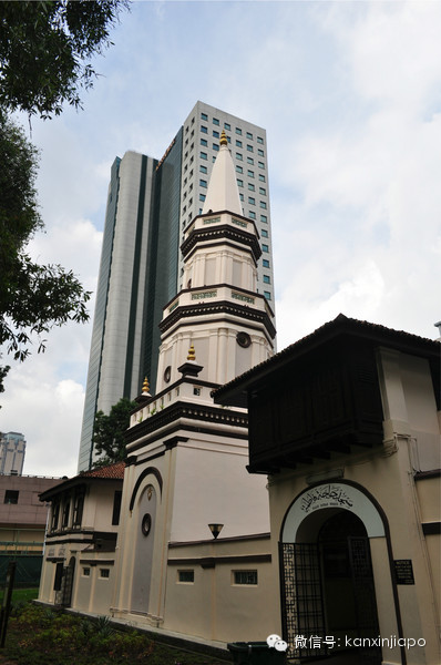 看不到大圓頂,是不是和印象裏的清真寺差距很大, 很有特色的清真寺塔,好像是馬來建築風格的↑