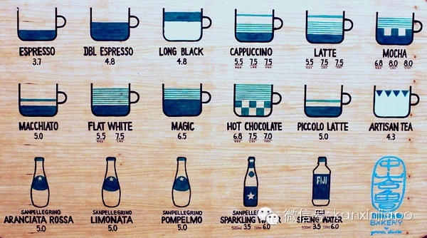 這裏沒有任何咖啡外的産品,咖啡單也只有簡單的當日咖啡、White、Long Black。White分3盎司、5盎司、7盎司,個人感覺分別相當于比較濃的piccolo latte、普通小拿鐵,以及比較淡的拿鐵。