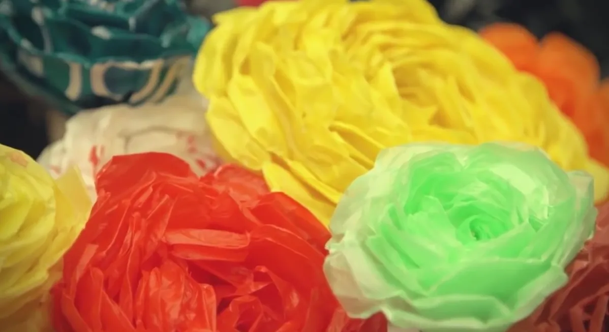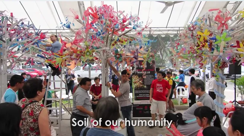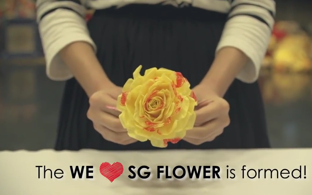 亮點五: 十萬朵”我愛新加坡”花散發給參觀者,傳播美好的祝福。最神奇的是,這些花全是從回收的購物塑料袋做成的。