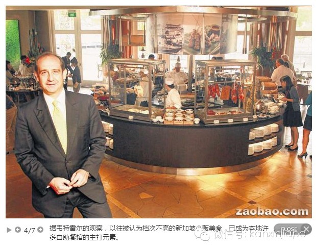 據韋特雷爾的觀察,以往被認爲檔次不高的新加坡小販美食,逐漸也成爲許多自助餐館的主打元素。