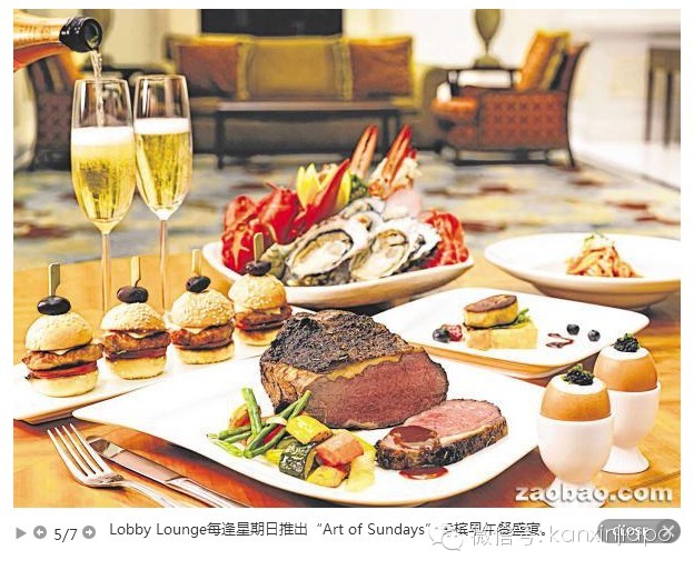 洲際酒店的Lobby Lounge每逢星期日11時半開始推出“Art of Sundays”香槟盛宴,無限量供應香槟同時,也送上行政總廚梁明楠師傅主理的中西合並菜肴如辣椒螃蟹意大利面、滿福苑中餐館的手工點心以及酒店特有的娘惹小吃。