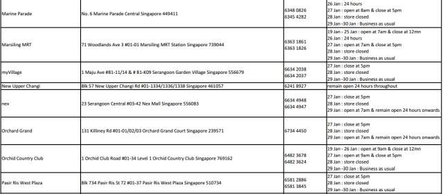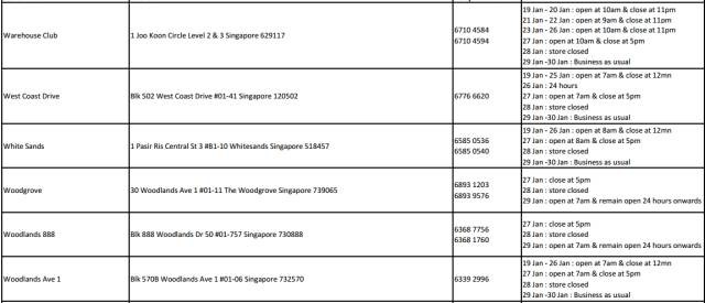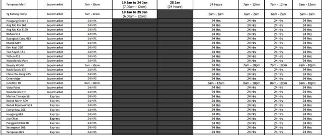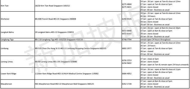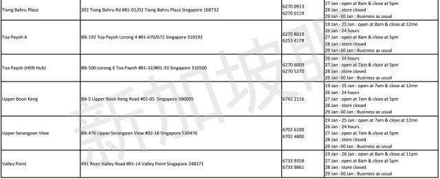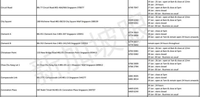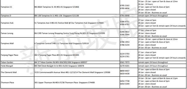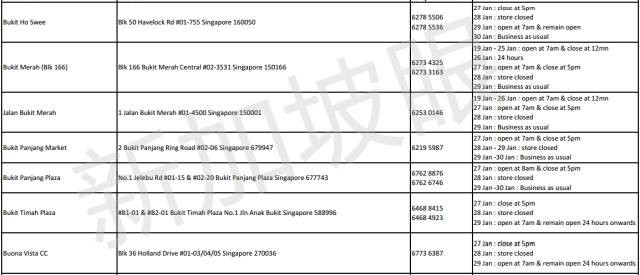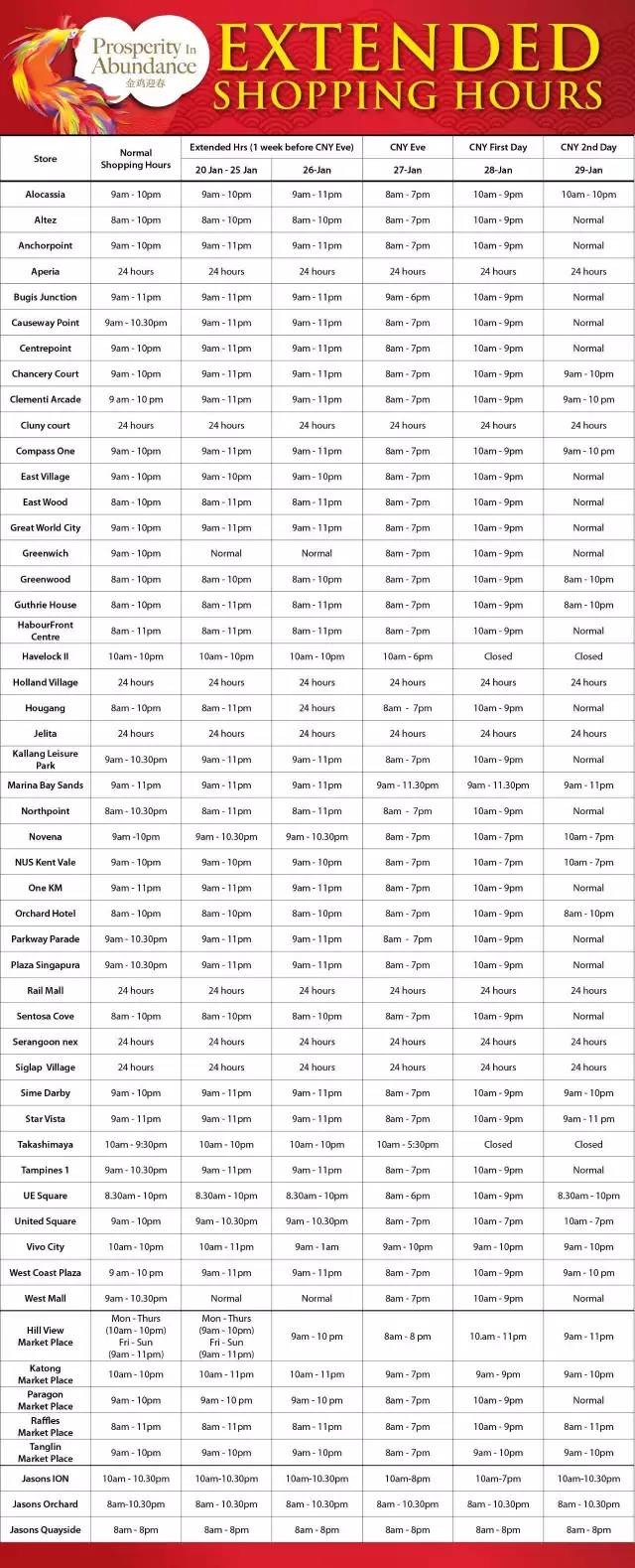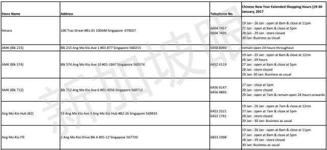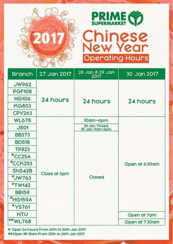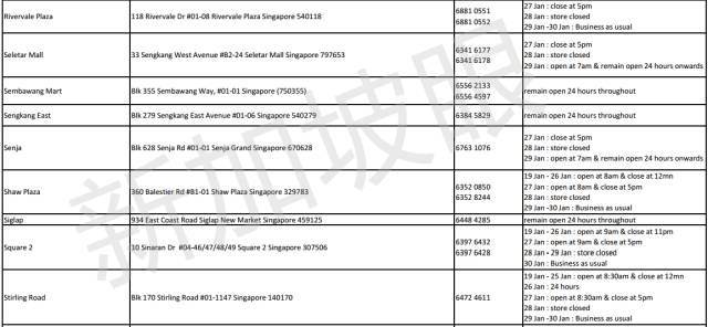 2017年新加坡5家連鎖超市,農曆新年營業時間 2021 年 3 月 10 日 老醯儿谝晋 馬上要過年了,很多餐館食閣,在初一、二都會休息。想要冰箱滿滿隨時都有吃的,一定要注意新加坡各家超市的營業時間,踩點去買買買! 昇菘超市 Giant (點擊看大圖) Cold storage Prime NTUC是按每家店來列營業時間的,大家可以點擊圖片看大圖,或者點擊文章底部“閱讀原文”查看。 相關文章:30年前朝鮮與日本 差距竟然如此之小全球165名前政要、學者聯合致信G20呼籲國際協調行動應對危機全球165名前政要、學者聯合致信G20,呼籲國際協調行動應對危機這兩天,中國連續出了兩個大新聞!這是要改寫歷史……新股觀察|Prime Skyline,樓宇外牆方案服務商對話Huobi Prime首發項目TOP:李林80%的時間都在問項目能否落地 社會