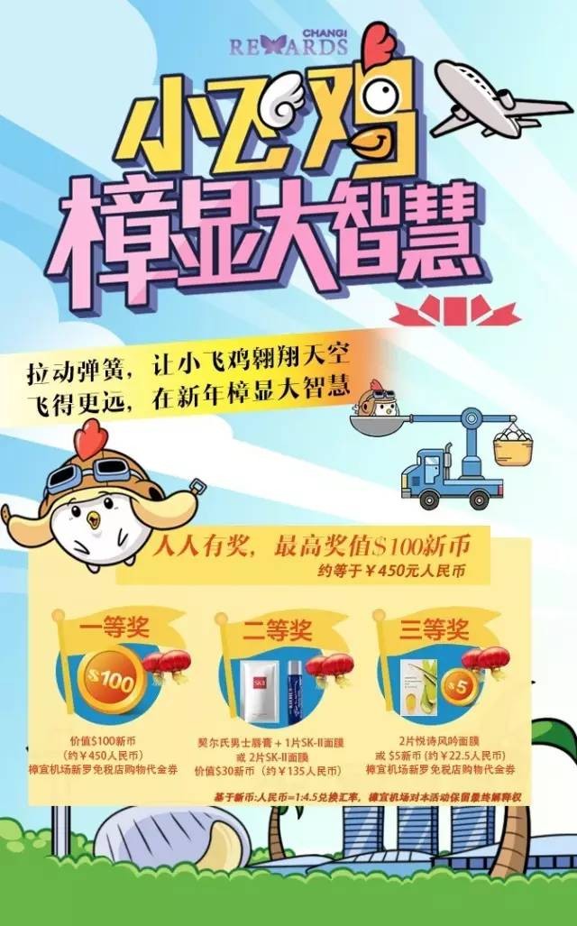 一等獎$100新幣樟宜機場購物代金券正好可以在機場用掉(已經列好機場shopping list的你開始搓手)