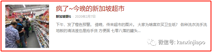 2月6日,新加坡全國進入緊急橙色預警的消息一出,全島各個超市出現了人從衆的場面。